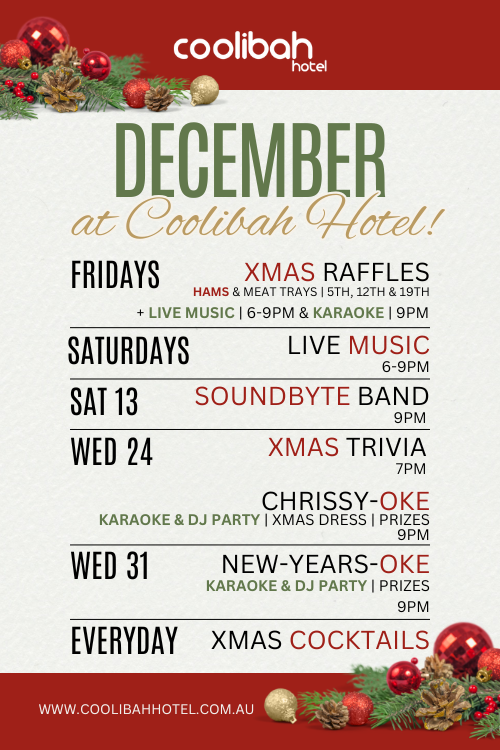 Come down and enjoy Coolibah Hotel’s selection of weekly and special upcoming events.